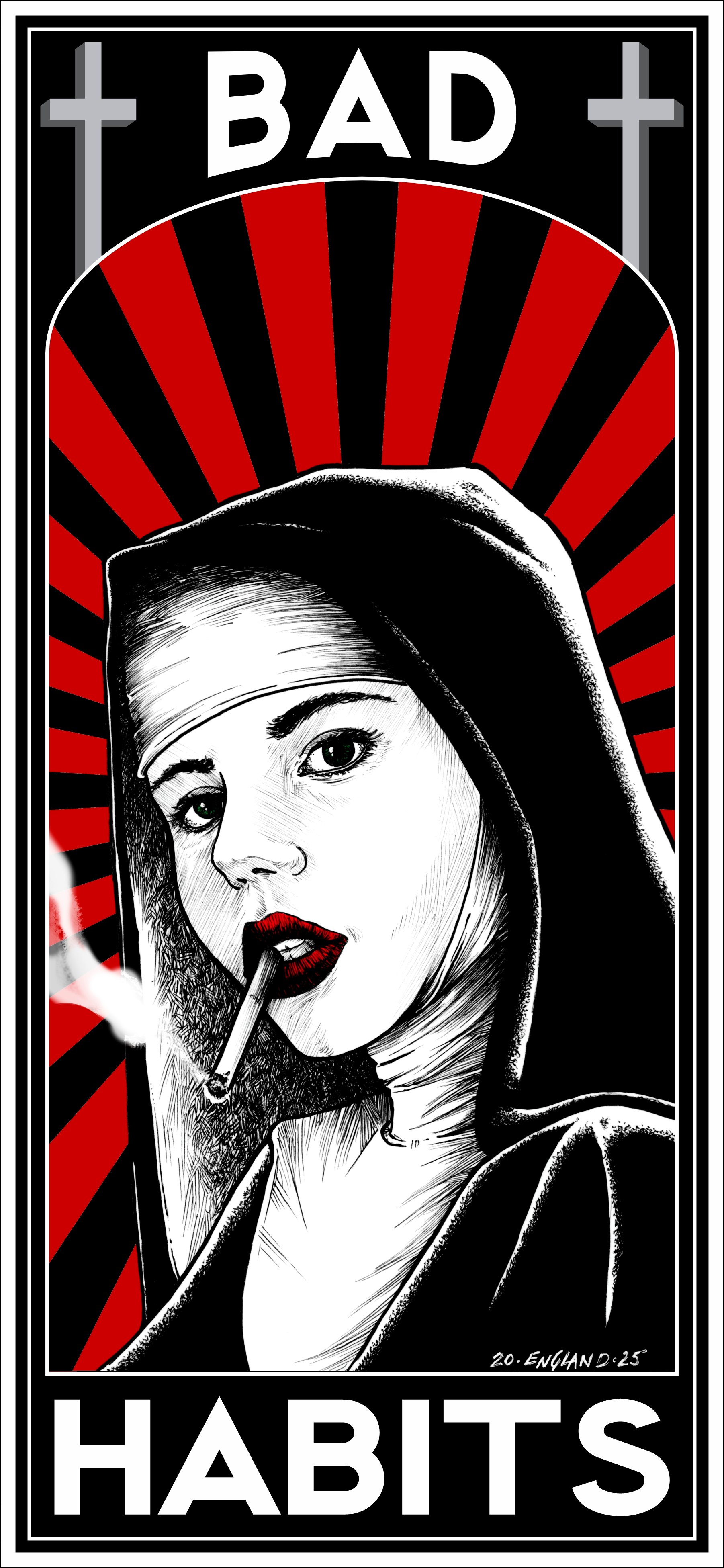 6" x 13" Bad Habits Nun Print. Print on archival matte paper with archival inks