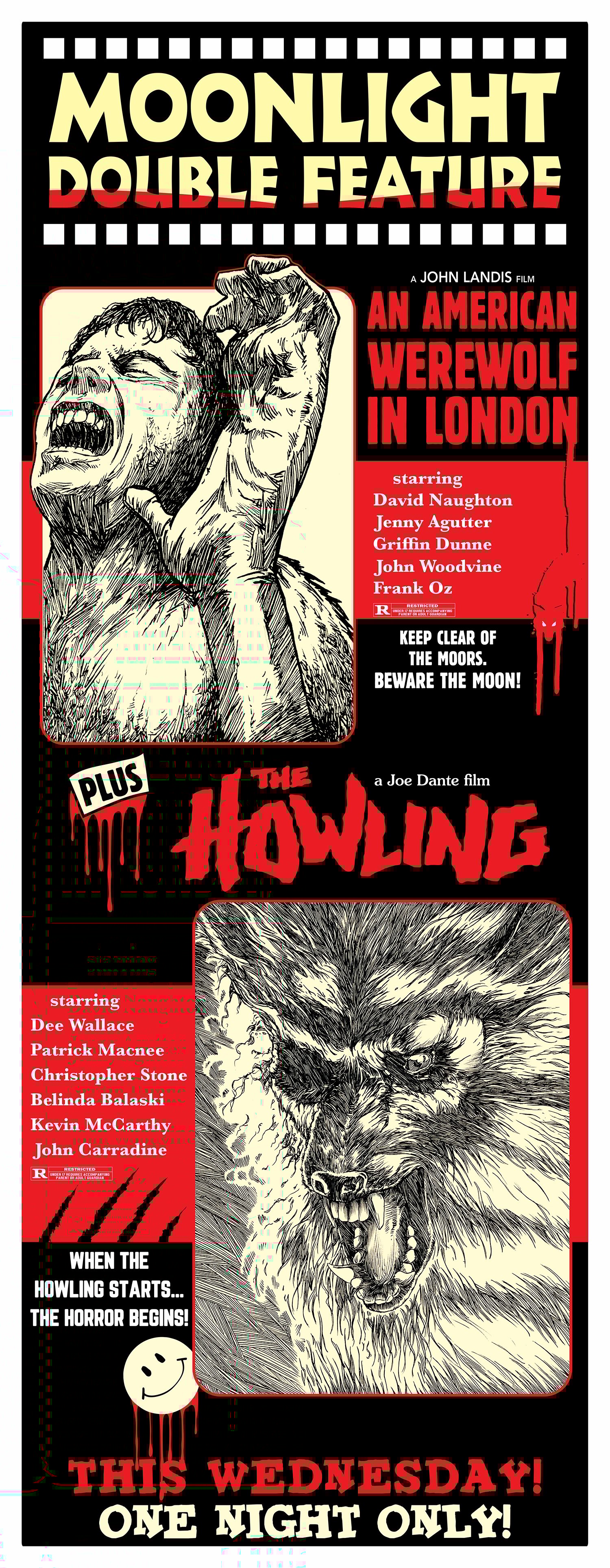 14" x 36" Moonlight Double Feature Print on archival matte paper with archival inks